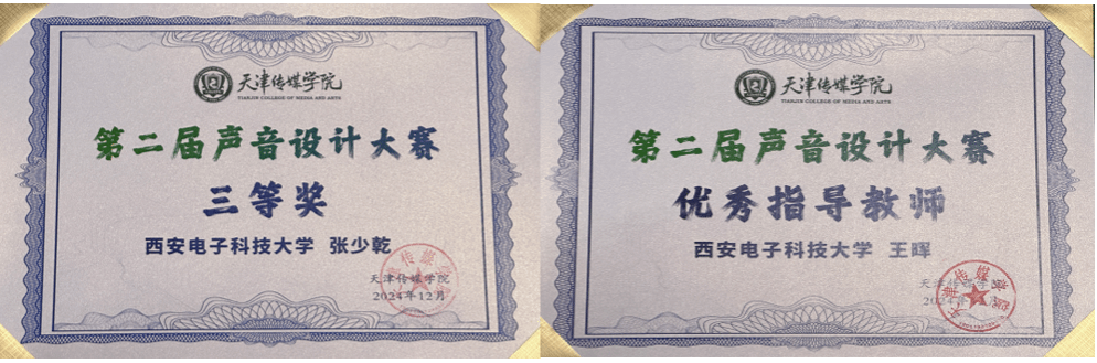(通讯员 王晖)近日,第二届“滨海之声”声音设计大赛在天津落下帷幕。yl23411永利集团官网登录录音艺术专业2022级学生张少乾在大赛中荣获三等奖。