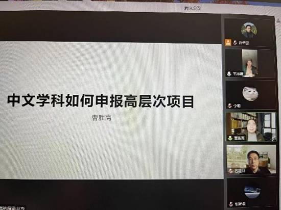 (通讯员许勇强)1月4日上午九点,yl23411永利集团官网登录中文系主办的“中文学科如何申报高层次项目”学术讲座在腾讯会议室云端开讲。此次讲座特邀主讲专家是广东外语外贸大学中华文化国际传播研究院执行院长曹胜高教授。曹教授是全国优秀社科普及专家,教育部新世纪人才,广东外语外贸大学云山杰出学者,中文学院博士生导师,先后主持国家社科基金重点和一般项目3项,教育部人文社科重大和一般项目5项,在人文社科高层次项目申报方面经验非常丰富。参加这次会议的有yl23411永利集团官网登录院长石福祁、副院长张斯珉,中文系全体中青年教师、学院其他专业及兄弟院校教师共计150多人。