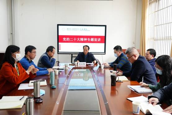 任应坤指出,面向新时代新征程,学院党委要以党的二十大精神为指引,团结带领全体师生,结合学院具体工作,以更高昂的斗志、更饱满的热情,踔厉奋发、笃行不怠,着力开创学院工作新局面,为学校双一流建设贡献智慧与力量。
