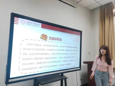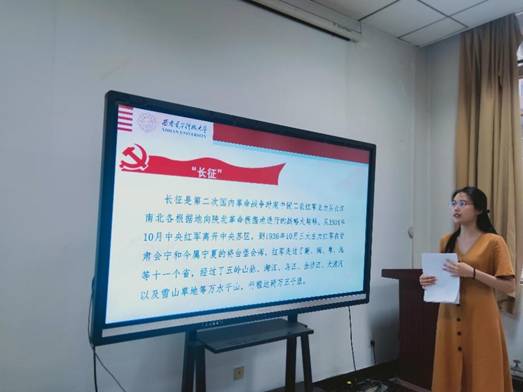 最后乔同学说到:“作为一名有着四年党龄、外语专业的研究生,我应加强对传统文化的了解,提高在传统历史文化方面的英语翻译能力,做外宣翻译时要采取适当的策略和方法,为推动我国优秀传统历史文化的国际化进程添砖加瓦;其次,我还将利用自身专业优势,积极与留学生交流,向世界各国弘扬优秀革命精神,展示红色魅力,让他们能够更深层次地了解中国、认识中国、认可中国。”