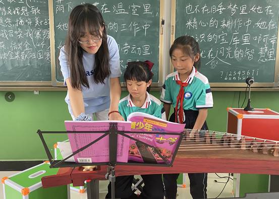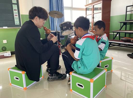 经过长达一个学期的教与学,学生们已经能够熟练掌握各乐器的演奏技巧并独立演奏一首简单的乐曲,乡村美育的效果初显,大学生在其间不仅体验到初为人师辛苦,更体会到将音乐传授给他人的快乐。自项目开展以来,大学们凭借着对音乐的热爱和对乡村振兴战略的信心,一次次地跨越一百多公里的距离,迎着骄阳而去,披着星辰而归。