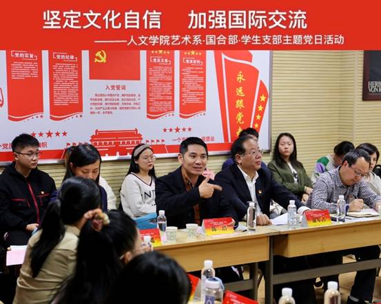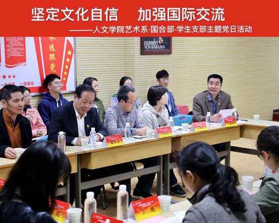 (通讯员 陈春晓 尚百成 陈明哲)10月17日下午,yl23411永利集团官网登录艺术系党支部联合国际合作与交流部、本科生与研究生党支部,在大学生活动中心310教室开展“坚定文化自信,加强国际交流”主题党日活动。校总会计师谢占军、yl23411永利集团官网登录党委书记李文兴、国际合作与交流部部长陈浩、yl23411永利集团官网登录艺术系党支部、国际合作与交流部党支部、本科与研究生党支部党员50余人参加活动。