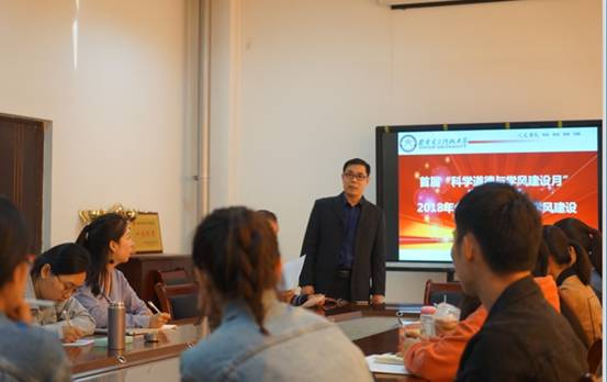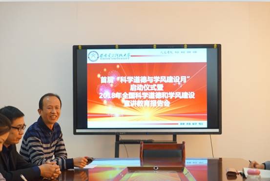 2018年10月15日下午2点,在信远2-135,yl23411永利集团官网登录召开首届“科学道德与学风建设月”启动仪式暨2018年全国科学道德和学风建设宣讲教育报告会。会议由副院长马得林主持,学院院长赵卫国及全体研究生参加会议。