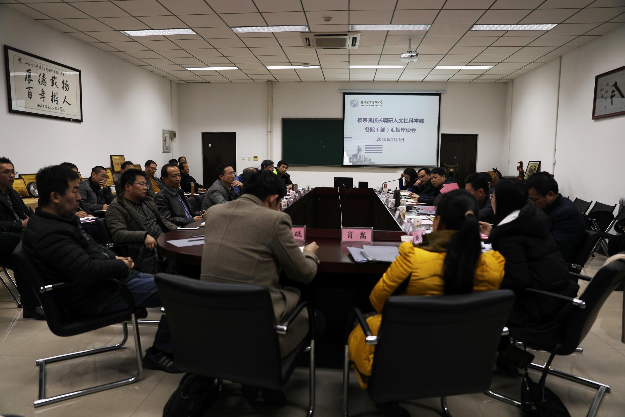 西电新闻网讯(记者 王格)1月4日下午,校长杨宗凯到人文社科学部调研,听取了学部下设各院部的工作汇报,与各院部领导班子成员进行座谈交流。会议由人文社科学部轮值学部长、经济与管理学院党委书记白旭东主持。