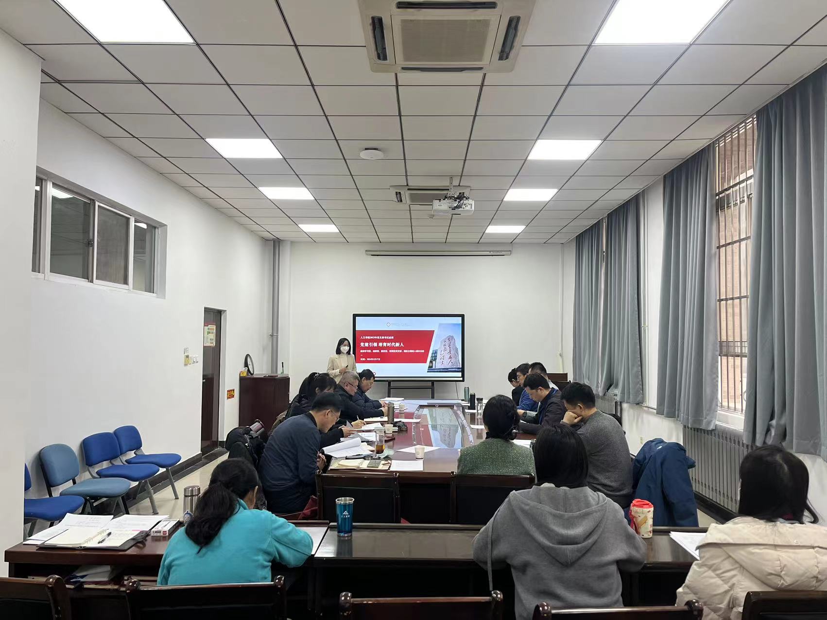 刘文博充分肯定了各支部书记2023年的工作,并对2024年基层党支部建设提出了明确要求,他强调,各支部要坚持以习近平新时代中国特色社会主义思想为指导,深入贯彻落实新时代党的建设总要求,重点做好以下三个方面工作。一是在规范性上下功夫。要开好用好“三会一课”,按照上级文件要求,严格执行党支部建设有关制度,认真抓好贯彻落实,切实提高支部党建工作的规范性;二是要在发挥特色上下功夫。各支部要结合实际,充分发挥在人文素养提升、校园文化氛围营造、美育教育等方面的特色优势,创新党建工作方式载体,着力打造具有人文特色的党建品牌;三是要在党建与业务融合上下功夫。要推动教学、科研、思政等与党建工作的相融合、相促进,党建要为业务助力,提供服务保障,着力培育标杆党支部,实现党建“双创”工作新的突破。