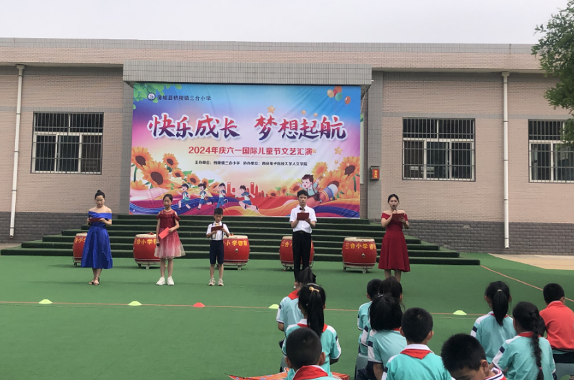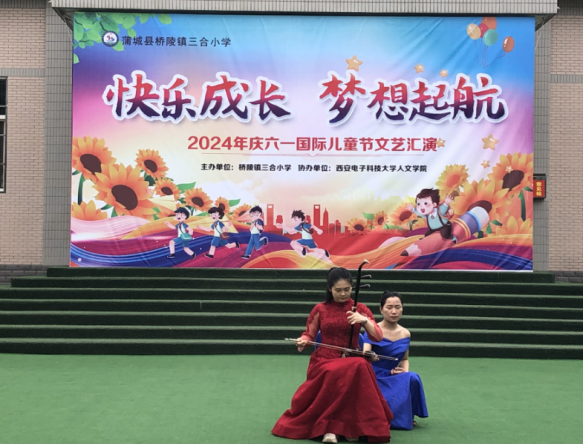 本次活动由桥陵镇三合小学主办,yl23411永利集团官网登录协办,是西电yl23411永利集团官网登录长期开展的“音乐点燃梦想,青春助力振兴”音乐文化振兴项目的延续。通过前期培训,三合小学学生具备了一定的音乐基础和艺术发现力,使得本次活动的表演形式更加丰富。不仅有小朋友与项目组同学共同为大家带来精彩的演出和项目组“小老师们”带来的琵琶、二胡、古筝、等精彩乐器演奏,更有一些学校老师和小朋友们自己排演的节目。