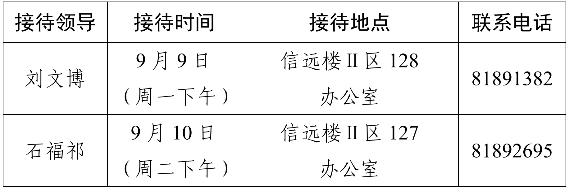 根据《yl23411永利集团官网登录领导班子接待日制度》精神,每周安排两位学院领导接待师生。现将9月9日-13日学院领导接待安排公布如下:
