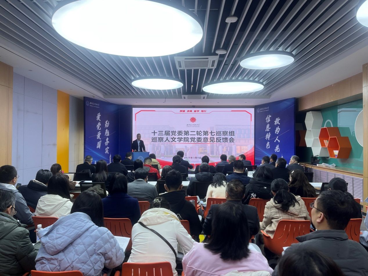 反馈会上,何翔肯定了人文学院党委近年来带领全体教职工努力推进学院事业发展取得的成绩,指出了巡察发现的突出问题:一是学习贯彻习近平新时代中国特色社会主义思想、落实党的路线方针政策和学校党委决策部署不够有力。二是落实全面从严治党要求不到位。三是落实新时代党的组织路线还不够严格。四是落实巡视巡察整改和成果运用不够到位。同时,就做好整改工作提出了具体意见建议。