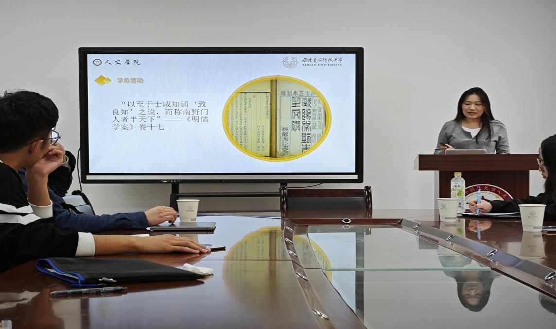 车昱霖以“欧阳德良知思想研究”为主题进行汇报,从欧阳德简介、思想渊源、思想继承三个方面展开探讨。首先,车昱霖以“器宇温粹,学务实践,不尚虚空”十二字概括了欧阳德先生的美好品质。随后她阐述了欧阳德先生在面对知行困扰,无法内求于己的难题时,与同门龙溪的切磋研讨使其有了新的领悟,即“阳明之学益以大振于时,南野先生之力也。”最后她就欧阳德“良知”之困,对良知的基本概念进行了阐释,将其与王阳明的“体认良知”相联系,最后跟随良知的发用路径上升到本体论的层面。