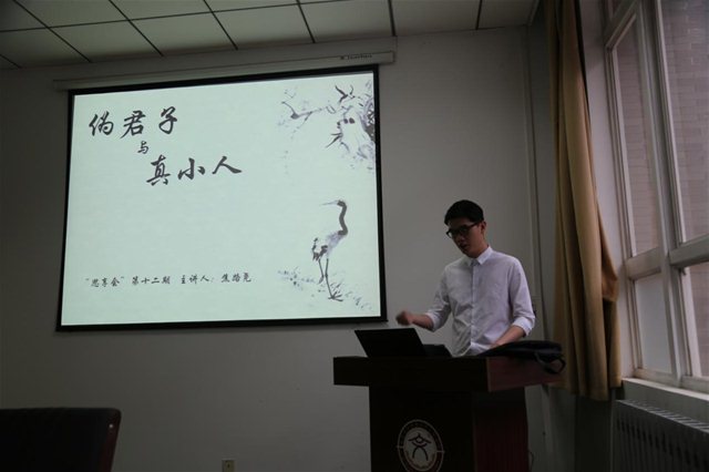 (通讯员 高潮)5月27日晚7点,yl23411永利集团官网登录14级哲学系焦路尧同学在信远135会议室主讲了主题为“伪君子与真小人”的第十三期思享会。本期思享会由高潮同学主持,一同到场的还有yl23411永利集团官网登录郁志强老师、杨子江老师,哲学系14级、15级部分学生和终南文化书院一期、二期、三期的部分学员以及来自电子工程、微电子等其他学院的同学。