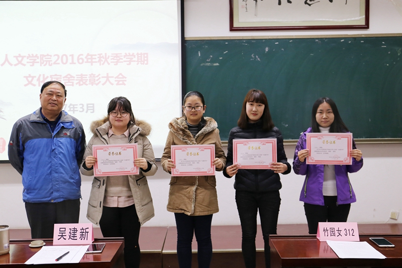在相互参观优秀文化宿舍的基础之上,各宿舍结合自身特点自主设计建设方案,提升了各宿舍文化层次水平,浓郁了学风,创造了干净整洁的卫生环境,养成了良好的学习生活习惯,形成了积极向上的宿舍风气。经过学生会的督促、检查和验收,为表彰先进,树立典型,最终评选出1#I-304等四个宿舍获得一等奖,13#601等五个宿舍获得二等奖;对唐子杰等79名同学进行通报表扬,并将在综合测评中给予相应加分及推优入党时作为一项基本考核条件,陈春晓、吴建新分别为二等奖、一等奖获得者进行颁奖。随后获得一等奖的四个宿舍代表依次上台展示宿舍风采。