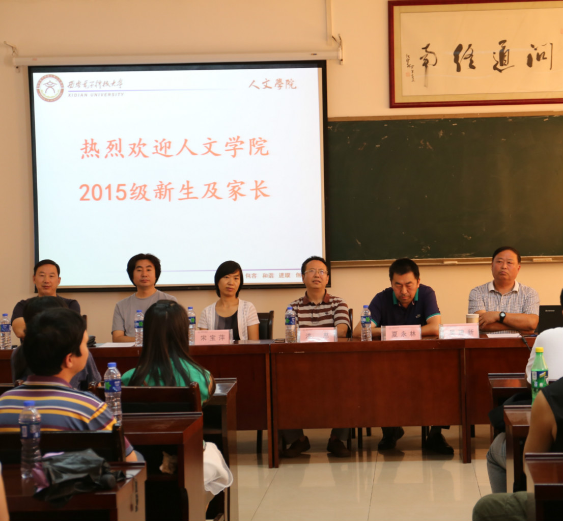 院党委书记吴建新教授代表学院向来自全国各地的2015级新同学表示欢迎和祝贺。他从学院历史、系所设置、学科结构、专业特色、师资队伍和学生教育管理等方面为新生及家长做了详细的介绍,重点向学生和家长解读了人文综合实验班的人才培养模式。一方面,按照“厚基础、宽口径、瞻前沿、重交叉”的培养原则,将哲学、汉语言文学和录音艺术三个专业的同学纳入终南文化书院育人体系,统一培养,重德性教育、心智启发、思维锻炼和实践创新;一方面,采取“主修+辅修制”,学生不仅要完成本专业教学计划规定的课程,还可以依据个人兴趣和社会需求辅修技术性较强的辅修课程。同时,学院创新实行学习导师制度,已经为三个专业分别配备了1名优秀教师,专门负责学生的学业指导,鼓励同学们参与导师的研究课题,提升学生的学术研究水平。